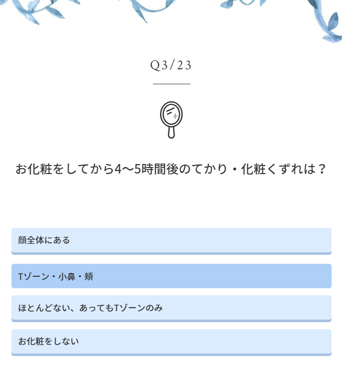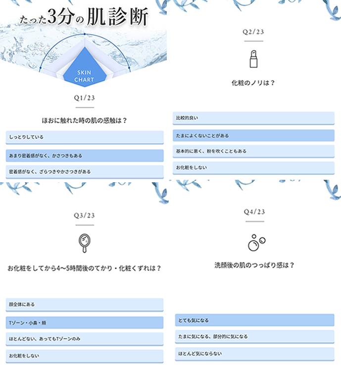 全23個の質問があり、自分のお肌の状況を把握するきっかけにもなります!