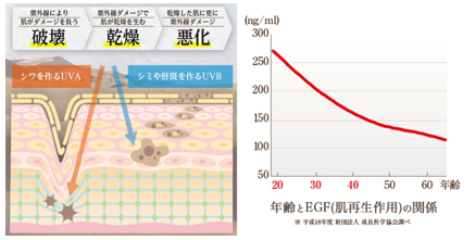 20代後半以降、急激にEGF(肌再生作用)が減ってしまうことが挙げられます。